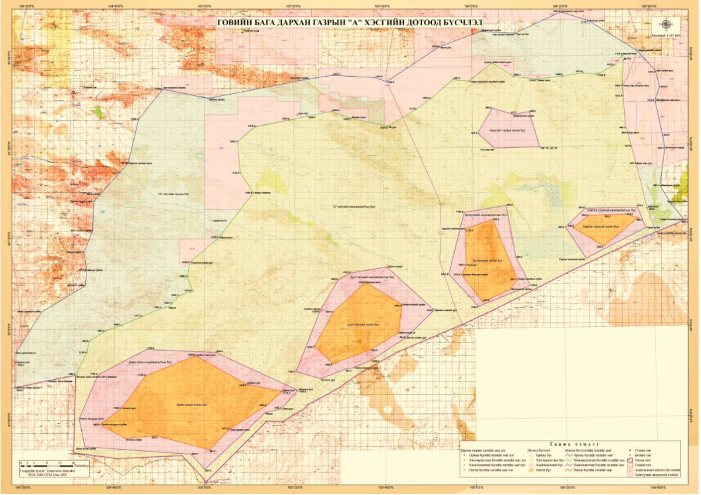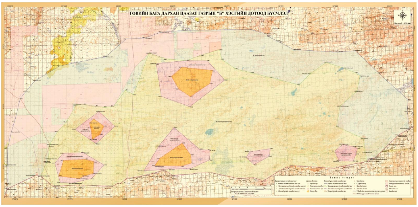 Байршил: Өмнөговь аймгийн Номгон, Баян-Овоо, Ханбогд, Дорноговь аймгийн Хатанбулаг сумдын өмнөд хэсгийн хилийн заагийн газар нутаг, Борзон, Заг сууж, Зээмэг, Галба, Хармагтайн говиудын зарим хэсгийг хамран оршдог.